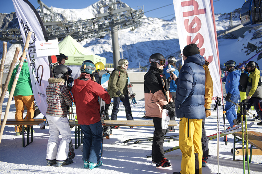 Aussteller des Freeheeler Testivals am Tuxer Fernerhaus
